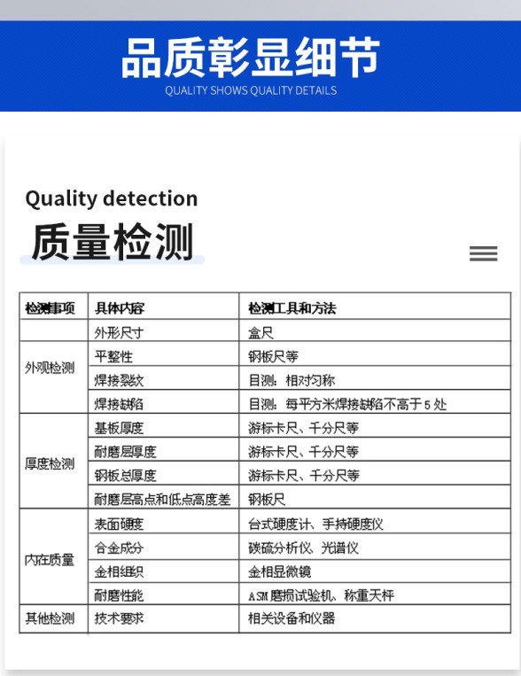 产品表面描述 | 在基板的表面堆焊碳化铬耐磨层 | ||