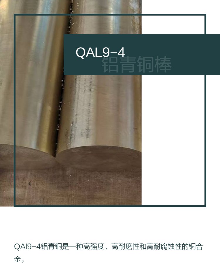 QAl9-4铝青铜是一种高强度、高耐磨性和高耐腐蚀性的铜合金,主要由铜(Cu)和铝(Al)组成,并含有少量的铁(Fe)、锰(Mn)、镍(Ni)等元素以增强其性能。以下是其具体的化学成分范围及性能特点: