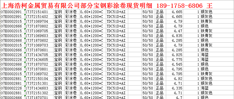 上海浩柯金属贸易有限公司部分宝钢资源 189-1758-6806 王 | ||||||||