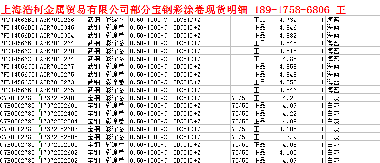 2018年|宝钢黄石高山白彩涂板|《每日特价》189-1758-6806 王