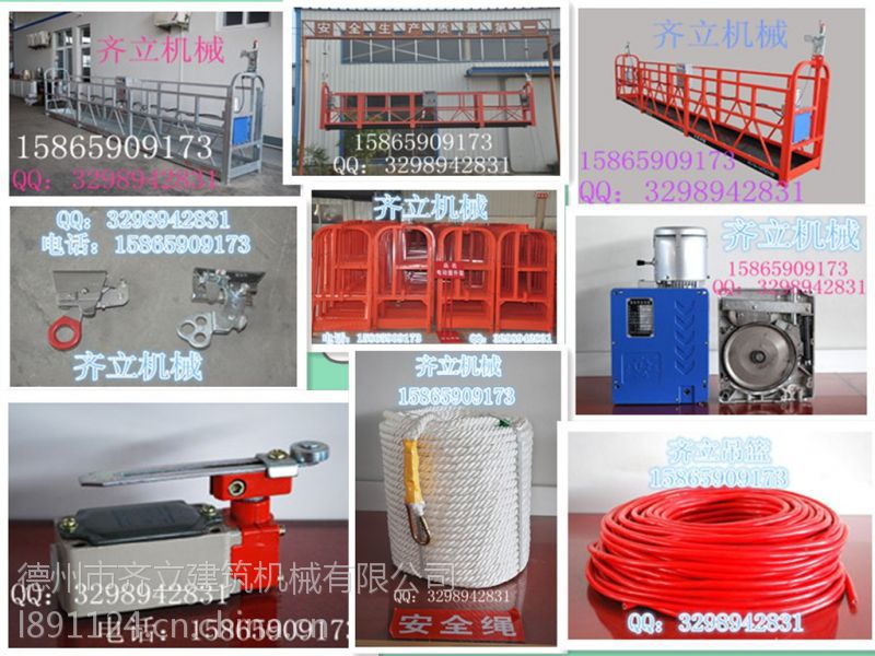 齐立吊篮有限公司产品:建筑吊篮,电动吊篮,脚蹬吊篮,电动吊篮提升机,吊篮提升机,高处作业吊篮,提升机四大件,电梯井道用双层吊篮,双层平台吊篮,吊篮专用电缆,吊篮安全锁,吊篮安全绳,吊篮配电箱,等产品。