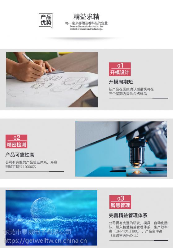 2.产品可靠性高,公司有完整的产品验证体系,寿命测试可超过10000次;