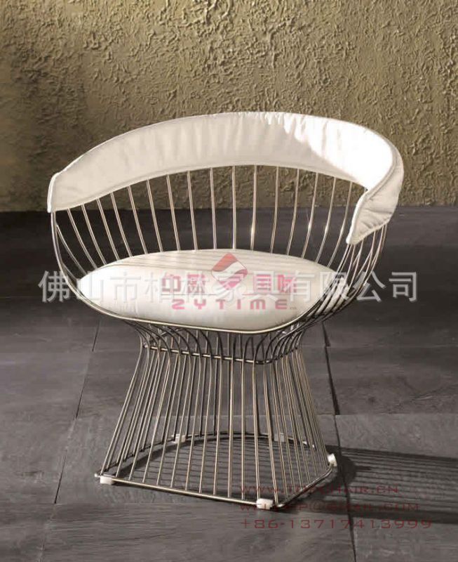 休闲铁线椅子也叫钻石钢丝椅,是哈里伯托埃(harry bertoia,1915-1978年)意大利艺术家及家具设计师于1951年设计的,带有艺术风格趋向于流线型,结构简约,现代、时尚。椅子材料采用高品质不锈钢和进口意大利皮,主要依靠手工制作。休闲铁线椅子/钻石钢丝椅(wire bar chair)主要用于酒店、别墅、会所、高档办公及样板房,是追求现代、时尚、舒适生活的经典家具。