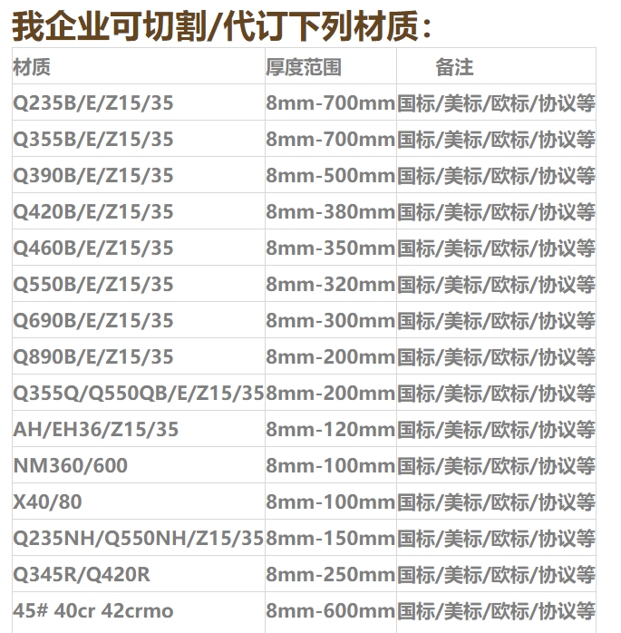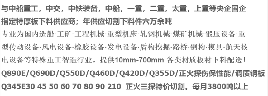 特厚钢板切割加工,700mm内保三级探伤。