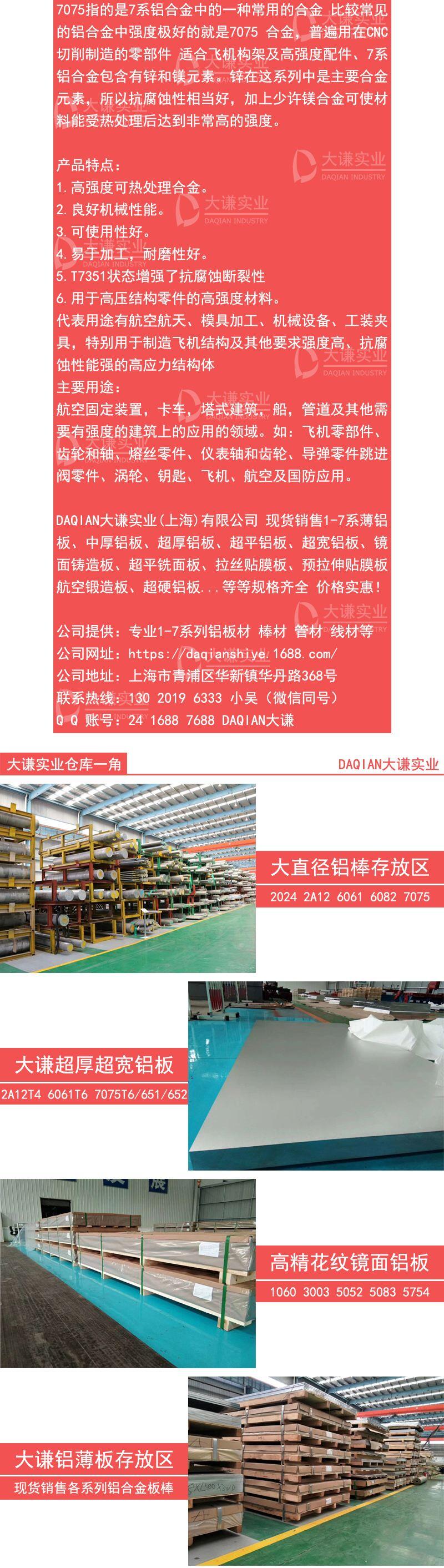 大谦专业7075铝合金大直径棒材 7075-t6铝棒厂家