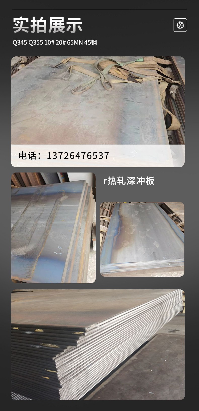 四、常规零售牌号:低合金高强度结构钢Q345A、Q345B、Q345C、Q345D、Q345E.碳素结构:Q235A、Q235B、Q235C、Q235D、优质碳素结构用钢:10#、20# 、35#、40#、45#、50#、  60#、65#、70#、优质碳素结构用钢:10号、20号、35号、40号、45号、50号、60号、65号、70号、合金结构钢:20CrMo、25CrMo、30CrMo、35CrMo、40CrMo、42CrMo、     38CrMoAl、10CrMoAl、低淬透性渗碳钢:20Cr、35Cr、40Cr、42Cr、50Cr、70Cr、弹簧钢板:60Si2Mn、60Si2Mn-A、65Si2Mn、50CrMn、50CrMn-A、16锰、20锰、25锰30锰、  35锰、40锰、50锰、65锰、50锰、75锰..