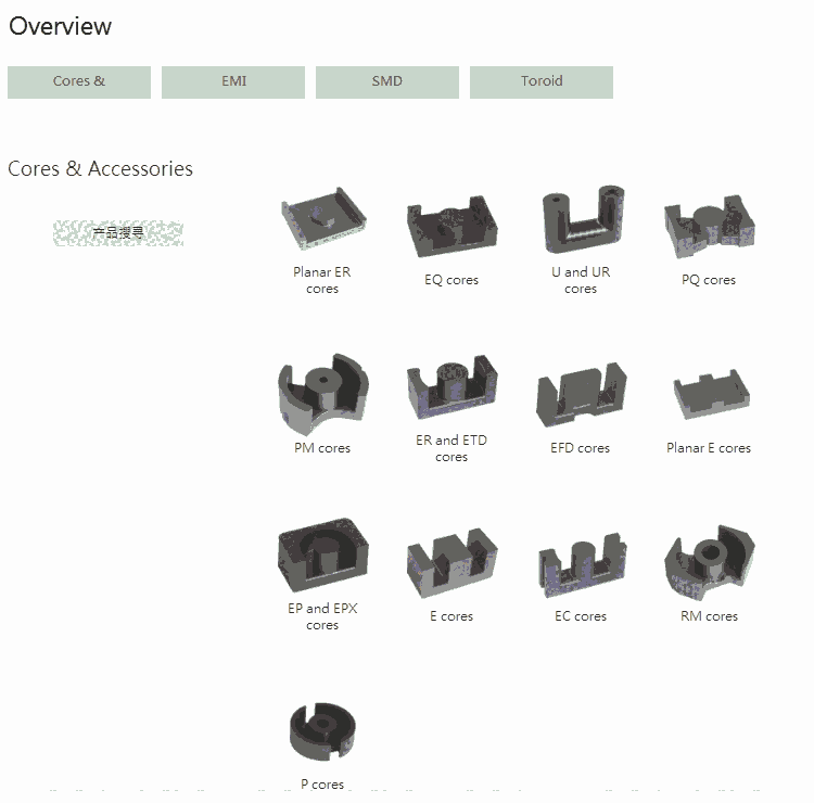 飞磁主要应用在电源转换、信号处理、电磁干扰抑制、模式识别等领域,涉及通信、消费电子、医院设备、汽车电子、家用电器、工业控制和仪器仪表等行业。飞磁提供全系列软磁铁氧体磁芯(锰锌和镍锌材质齐全),线圈骨架,及抑制EMI产品等包括:E型,EFD型,EP,MBH2,WBS,BDS,CMS,MLS,MLP,MLN,CSA,BAR,LP,EPX,EP,EC, PM,EI,PLT,EQ,ER,ETD,Frame&Bar,PH,P,ROD,TUB,PQ,RM,U,PM,及各种圆环(T,TX,TN)。