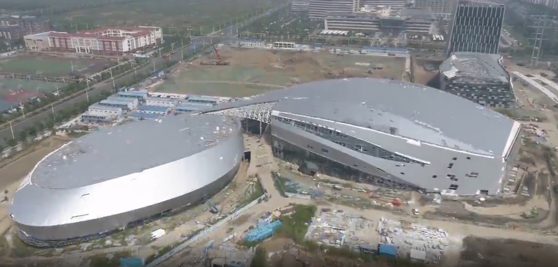苏州湾体育中心位于吴江东太湖度假区(太湖新城)核心区,由体育馆、游泳馆和商服楼三个单体组成,项目占地面积约171亩,总建筑面积约8.4万平方米,计划总投资约12.46亿元。?苏州湾体育中心在设计上以水为师,流线型的景观设计宛如溪流贯穿整个基地,轻盈的主体建筑分立“溪流”两旁,形成两片飞舞的祥云。行云流水,云浮水面,水流不息。建筑与环境联袂构筑了吴江体育中心美好的愿景。整体创意蕴含着吴江悠久的历史文化,更体现着新时代新吴江开放创新的精神。
