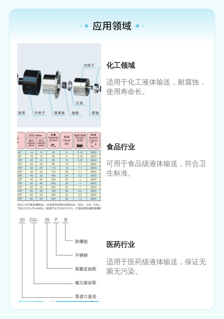 适用范围 | 广泛,适用于多种液体输送 | ||
