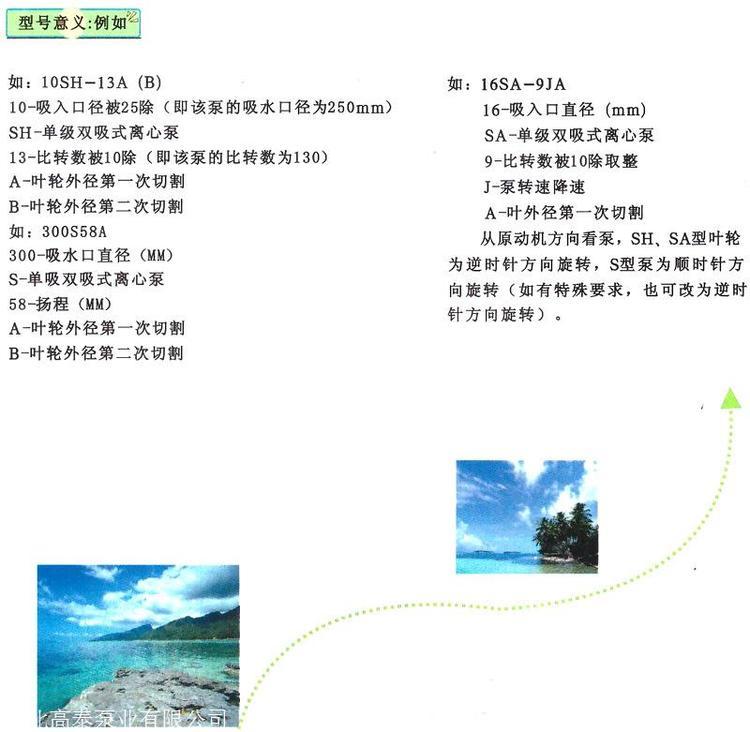 单级双吸轴向中开涡壳离心泵,卧式安装,驱动机(电动机或内燃机)可根据需要设置在泵的左侧或右侧(即面向出口,驱动机在左侧为逆时针旋转,在右侧为顺时针旋转)。