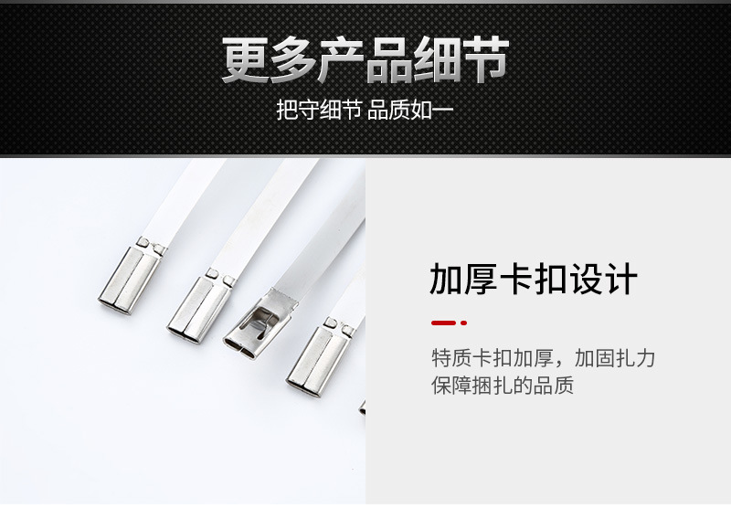 3.可以通过增加不锈钢扎带的缠绕圈数来提供高的捆扎拉力;