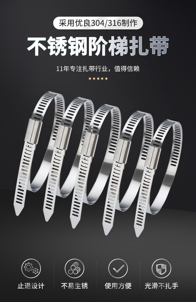 兴荣 XR-JT7*600/304耐腐蚀强力紧固阶梯型不锈钢扎带 加工定制 | 是 | ||