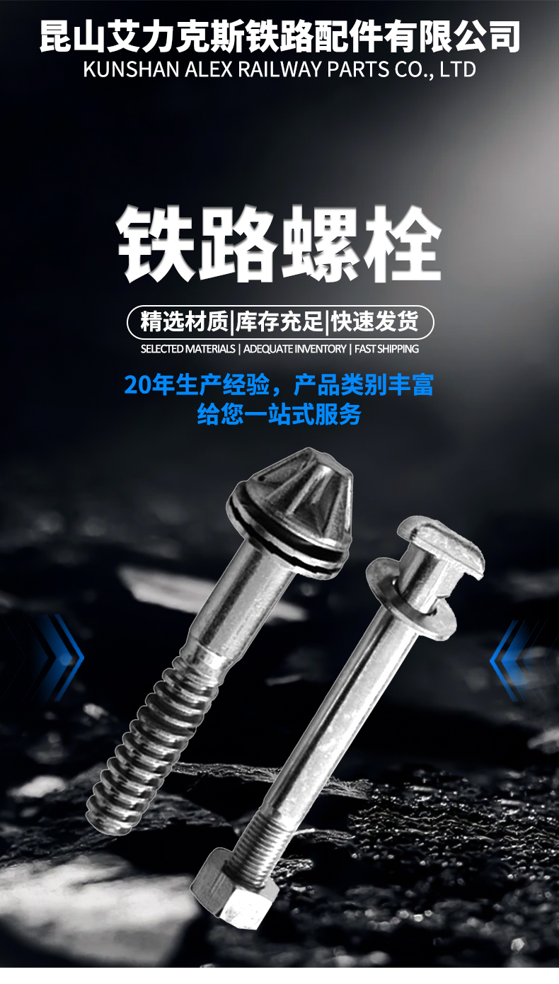 艾力克斯定制铁路轨道螺栓鱼尾丝蘑菇头螺丝22*135