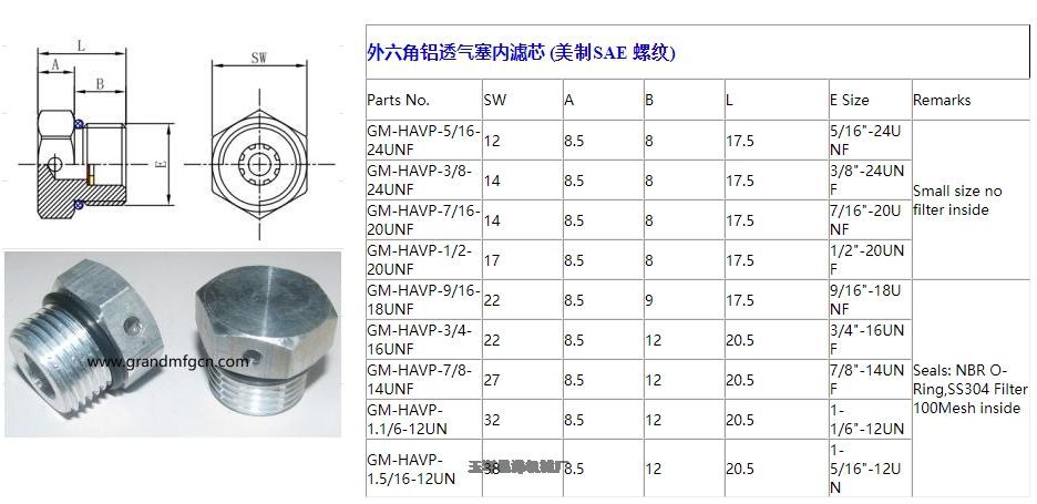铝制SAE#8 液压缸和阀门 GrandMfg® 铝制通气塞,透气塞 3/4-16UNF