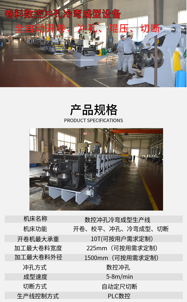 机床功能 | 开卷,校平,冲孔,冷弯成型,切断 | ||