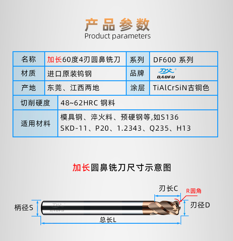 适用范围 | 48-60HRC模具钢加工 | ||