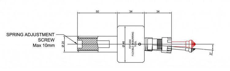 FDTSXO浮动去毛刺倒角工具:通过主轴驱动,可以达到5mm的径向偏移量(标准切削头露出夹头部分为20mm),需要在走轮廓程序时所有的轮廓都能被加工,切削头需要有1-3mm的预压入量。