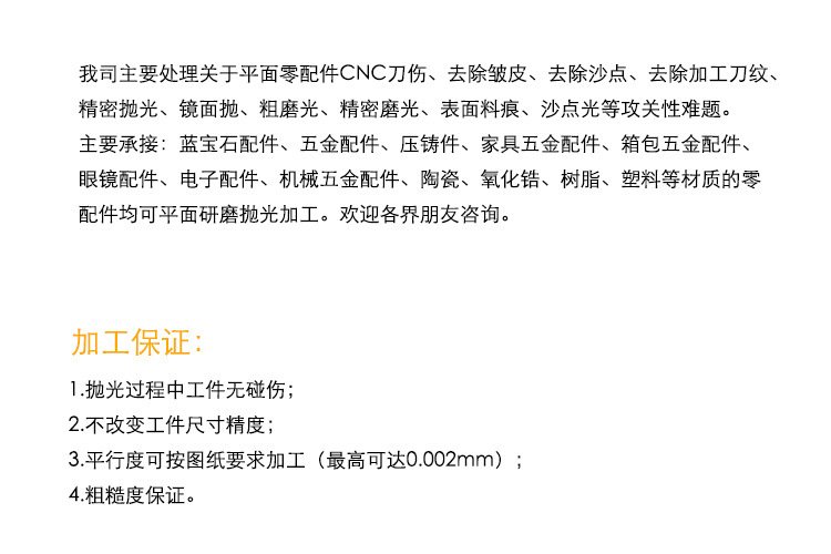 服务项目 | 平行度加工 平面度加工 操作方式 | ||