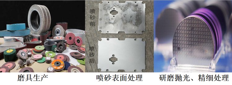 4、树脂磨具——磨料具有颜色合适、硬度好、有韧性、合适的颗粒断面类型和刃口保持度,应用于树脂磨具,效果理想;