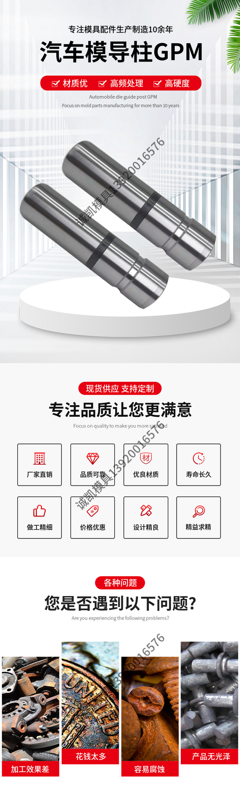 精密汽车模具导柱GPM材质S45C高频热处理硬度可达58HRC