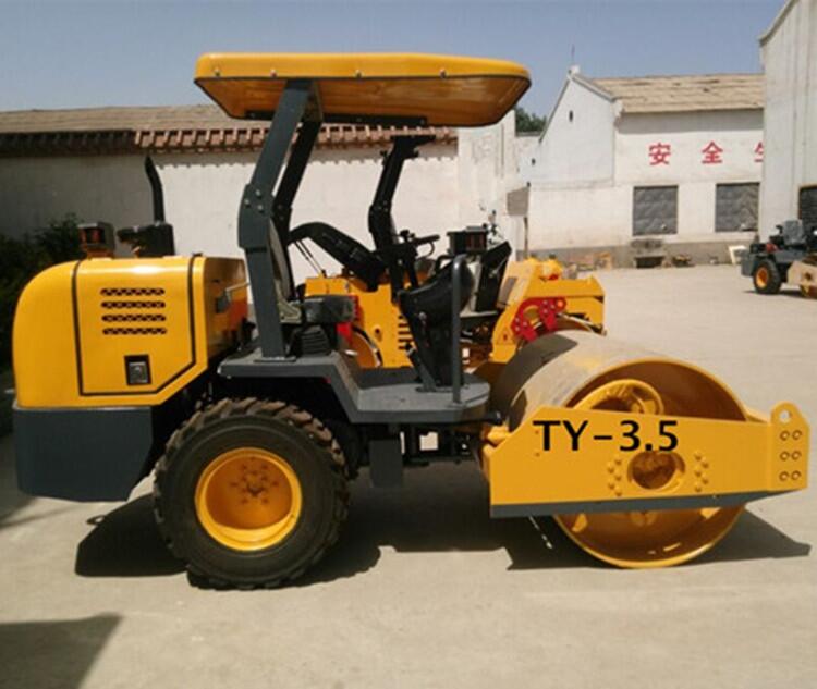 SY-3.5T型振动压路机是一种轻型振动压实机器,适用于宽1.1米以上的沟槽,道路,体育场地等修筑中的土地路面压实平整工作。该机主要由铰接式车架,振动轮,驱动轮,发动机,传动装置,液压振动,液压转向,动力洒水,操作机构和电器系统等主要部分组成。