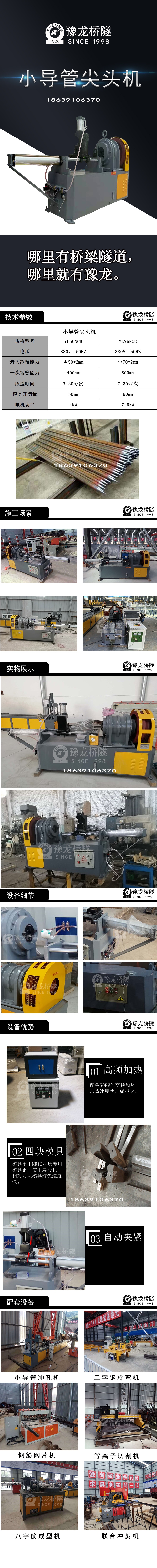 1. 气动高频加热设备,将所加工小导管端部送入加圈进行加热,待小导管加热烧红取出;