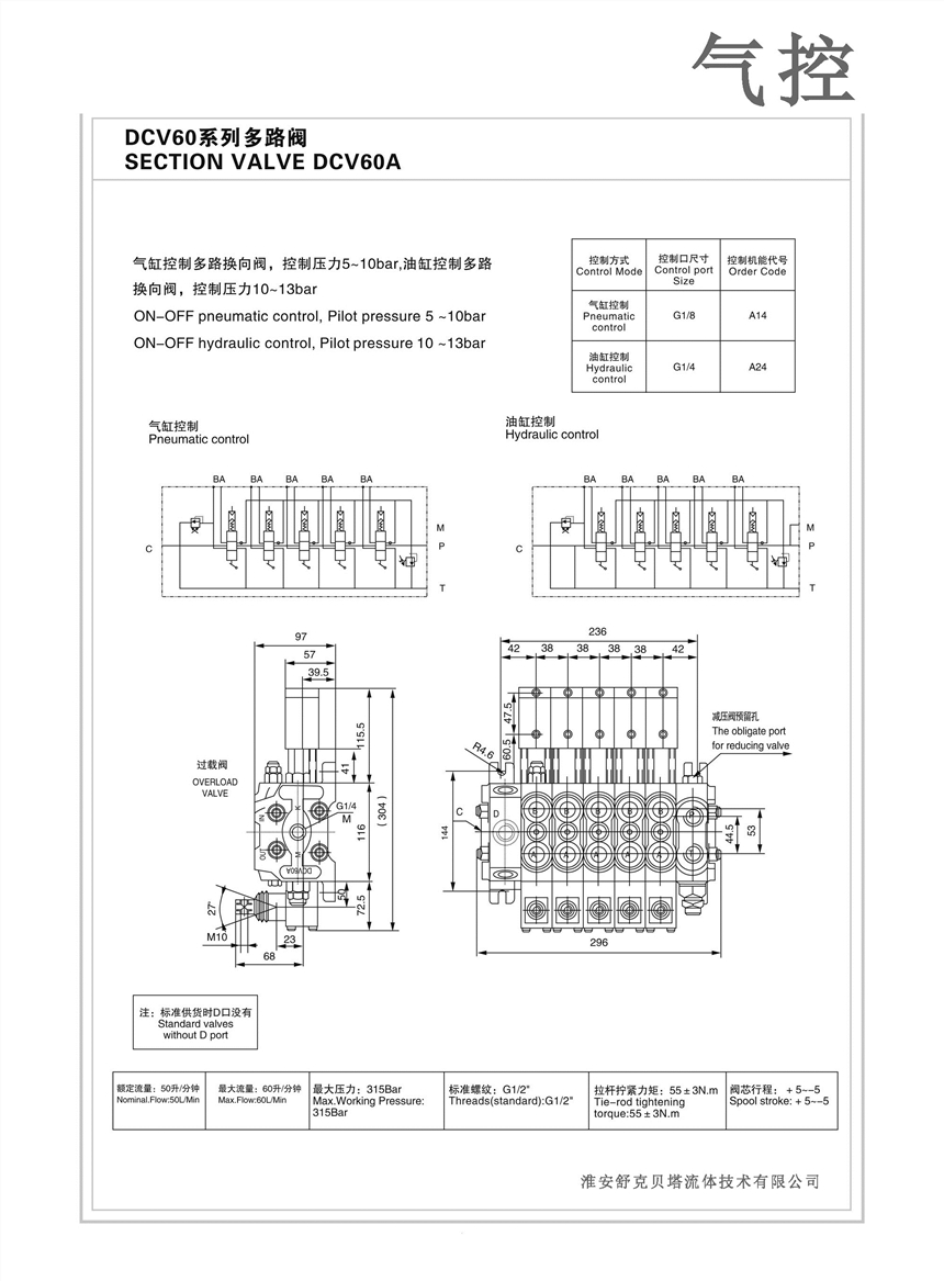 DCV60-2O4T.O4W-液压多路阀