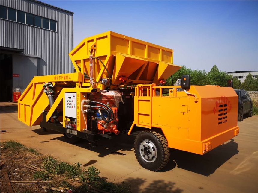 全自动混凝土喷浆车主要应用于铁路公路隧道、水利水电、地铁、矿山巷道工程施工。其基本工艺是利用液压力将预拌好的混凝土通过管道输送至喷,在喷口接入压缩空气和速凝剂,再将混凝土高速喷射到受喷面,经快速凝结硬化后形成混凝土支护层。使上料、喷浆两个动作通过机械实现统一,消除经住喷浆工序中人工混料、上料产生灰尘对工人的身体危害;回弹率低、喷浆面质量好,可大大提高掘进进尺,提高工作效率#自动上料喷浆车适用于混凝土喷射施工作业,是具有自动上料功能的喷浆设备。