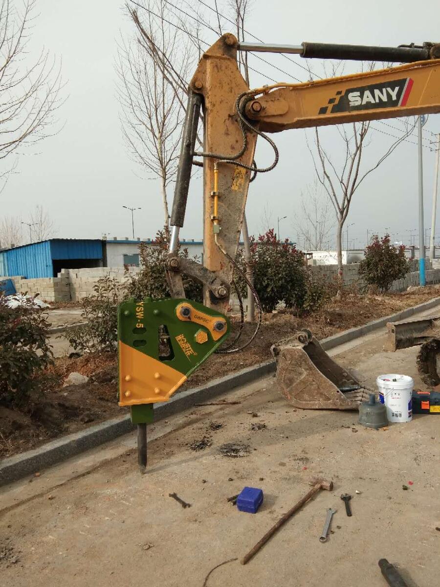 在作业时应注意,破碎锤在同一打击点连续打击时间zui好不操作30s,如果长时间打击而未能破碎目标物体就应改变打击位再尝试,不然就会形成蘑菇头。这类问题可以自行处理,用打磨机磨尖锐后继续使用,但如果情况严重,也有可能是厂家热处理硬度不够,这种情况可以和厂家连写,协商索赔问题。