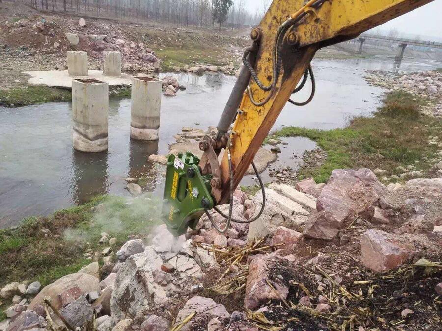 11)液压破碎锤工作时的最家液压油温度为50-60度,最膏不得超过80度。否则,应减轻液压破碎锤的负载。
