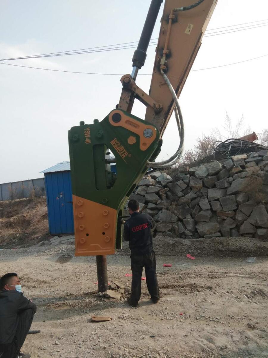 另一方面,挖掘机/装载机大臂举升情况下,如果击穿力过大并且进行破碎作业时,机器可能会在碎石瞬间突然倾斜,破碎锤猛烈,破碎锤猛烈撞击石头会引起破碎锤损坏,在此状况下进行打击作业,振动也会传到挖掘机的履带、车轮应避免在这种状况下作业。