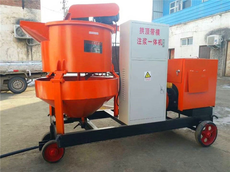 是拱顶带模专注浆机,主要于衬砌台车拱顶带模注浆施工,拱顶带模注浆是在吸收技术基础上研制成功一种新多功能施工机械,拱顶带模注浆主要特点是泵送工作压力大、生产效率高。小型搅拌注浆一体机