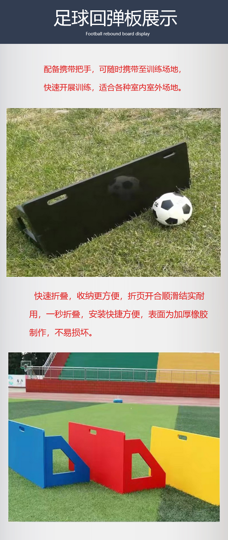 津鸿带把手高分子聚乙烯材质足球回弹板抗冲击便于折叠PE训练板