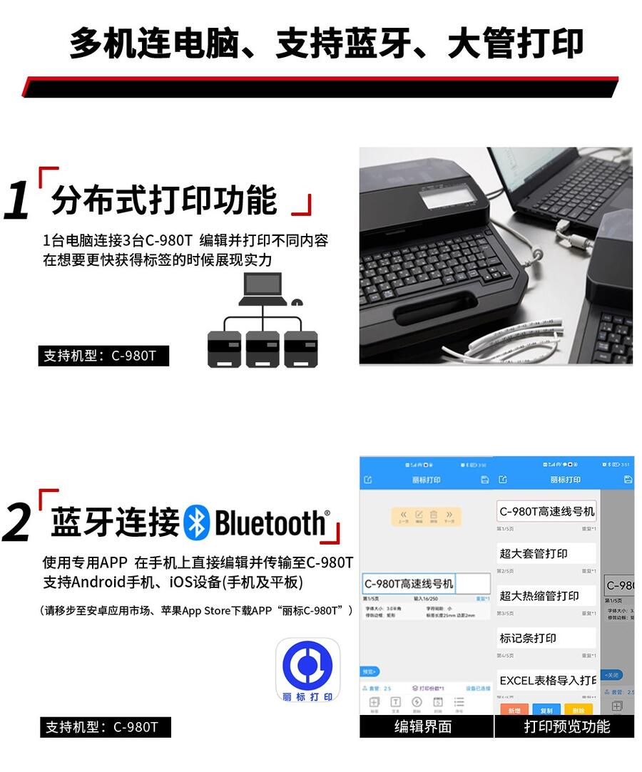 丽标C-980T高速线缆标志打印机线号机
