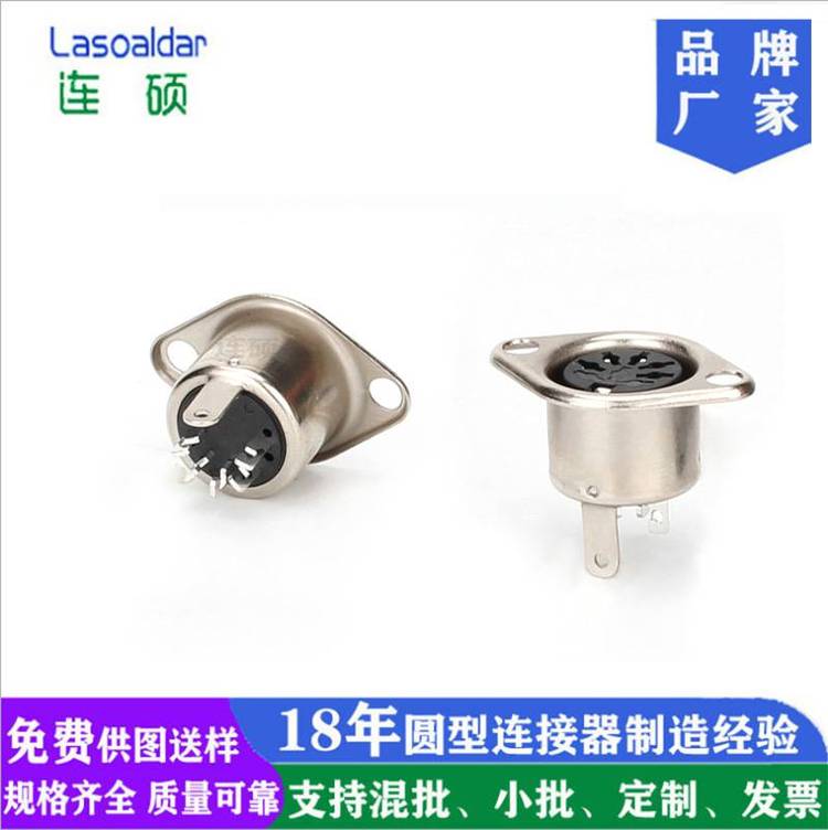 lasoaldar连硕厂家生产DIN8PIN母座焊线式带螺丝孔医疗电子治疗仪