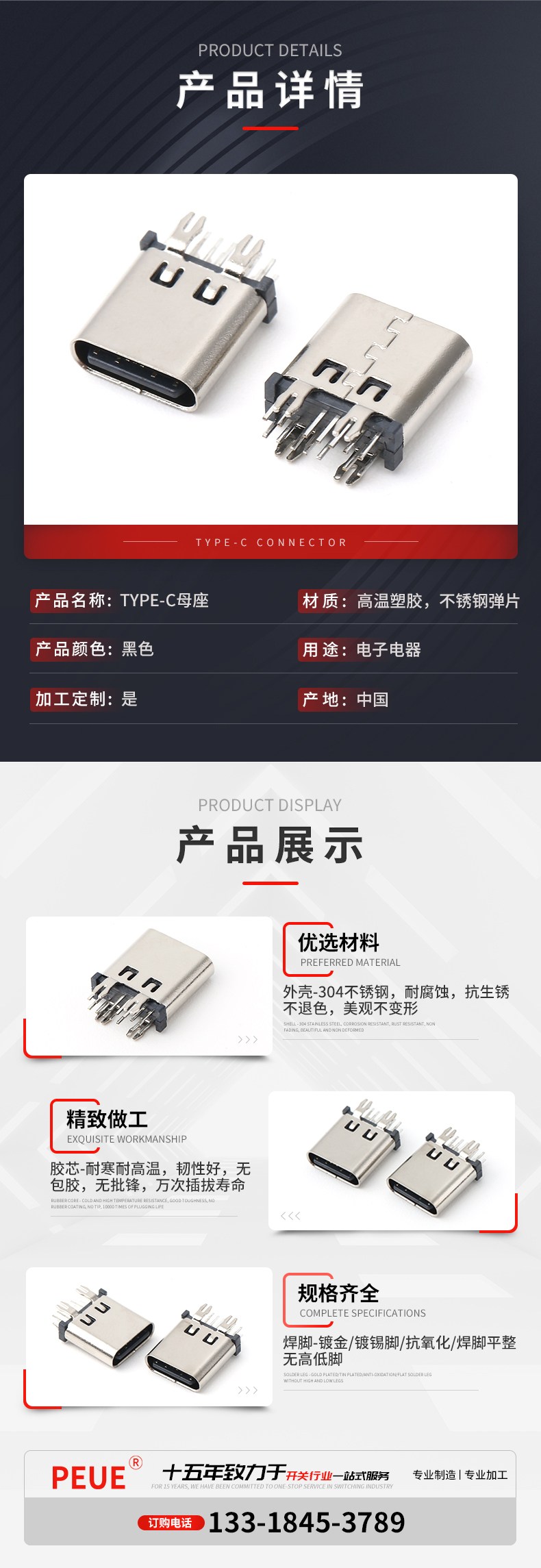 TYPE C 14P立插母座