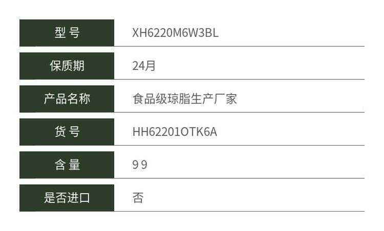 主要营养成分 | 食品级琼脂 | ||