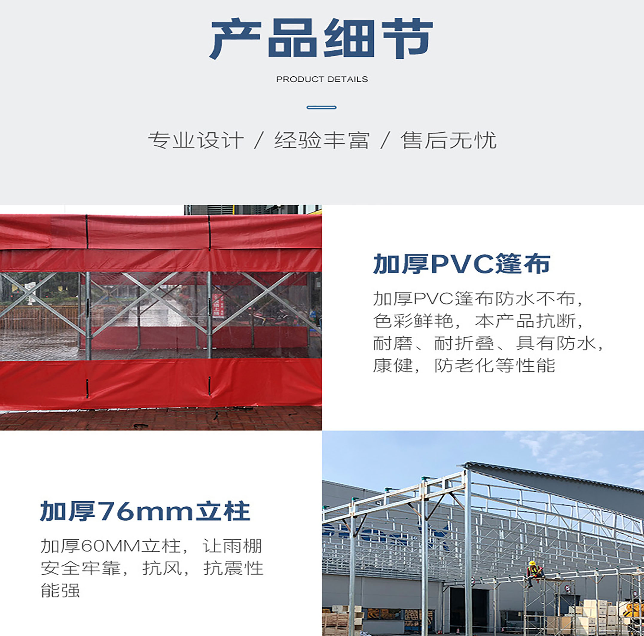 定制推拉篷防雨防晒长方形用加厚斜撑加大实心轮宏源定做