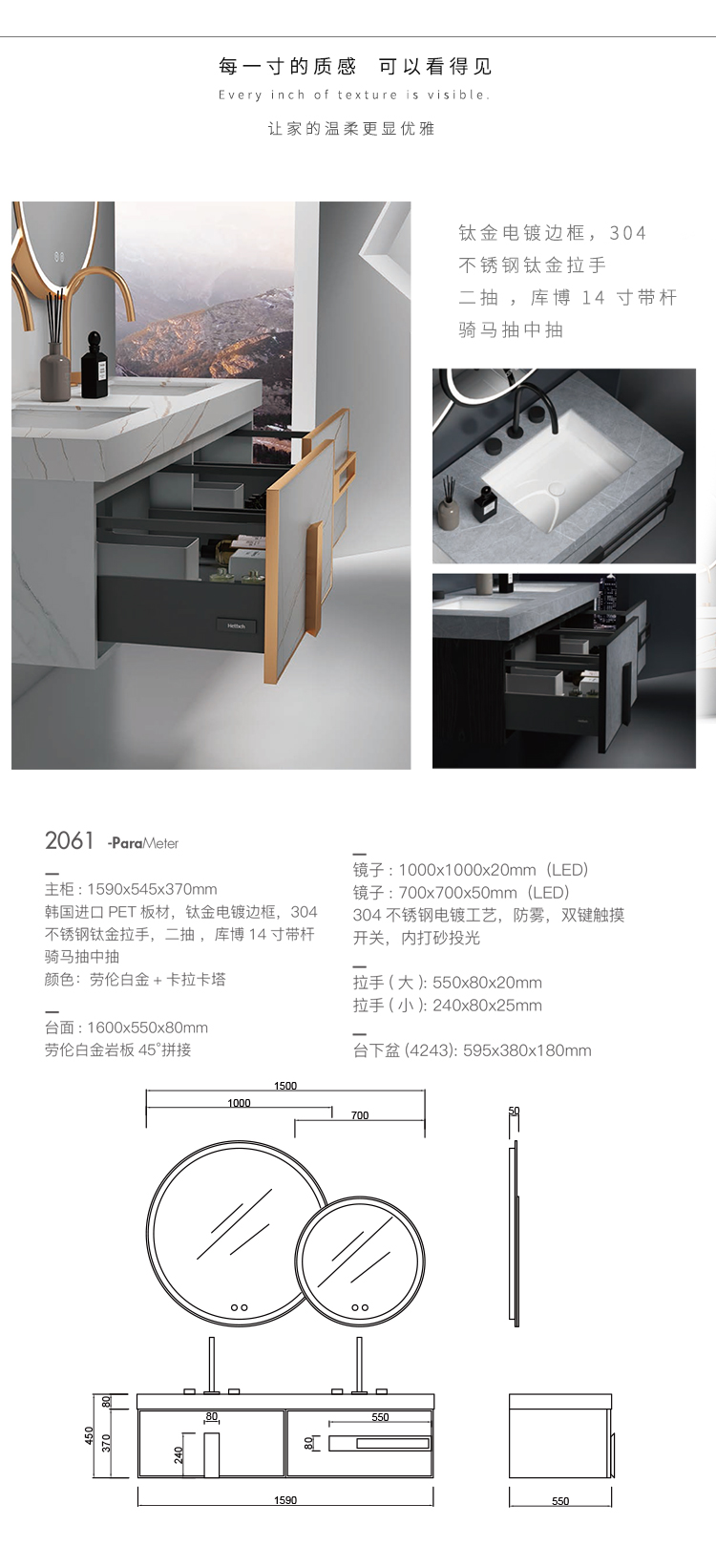 组合形式 | 主柜 台面 台下盆*2 镜子*2 | ||