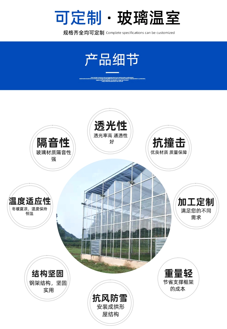 • 规格:锯齿形玻璃温室大棚