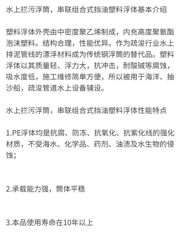 翔宇塑料海上一体式警示串联拦船浮排垃圾拦截浮筒