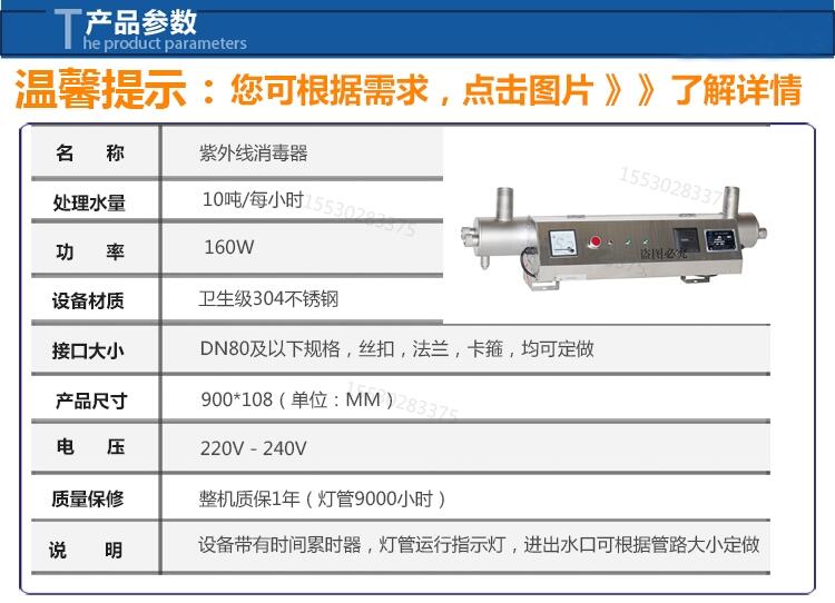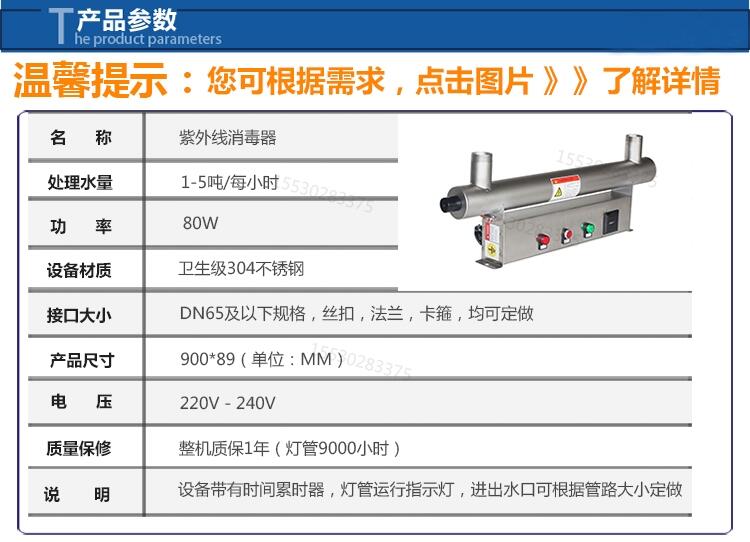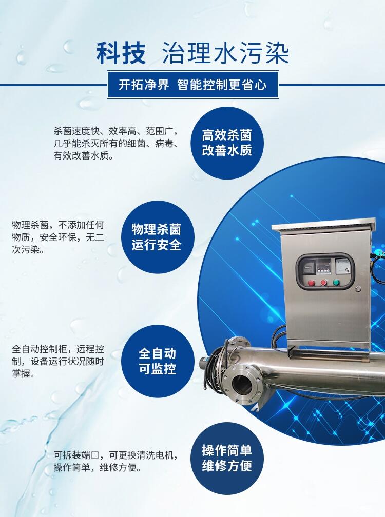紫外线消毒器水处理设备过流管道式不锈钢UV杀菌灯二次供水消毒畜牧水产养殖杀菌