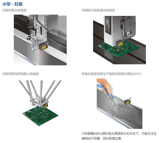 采用位移传感器所使用的高精度CMOS影像传感器,以及位移传感器一直使用的本公司独特的算法,实现了微型激光传感器1mm/100mm的高精度。