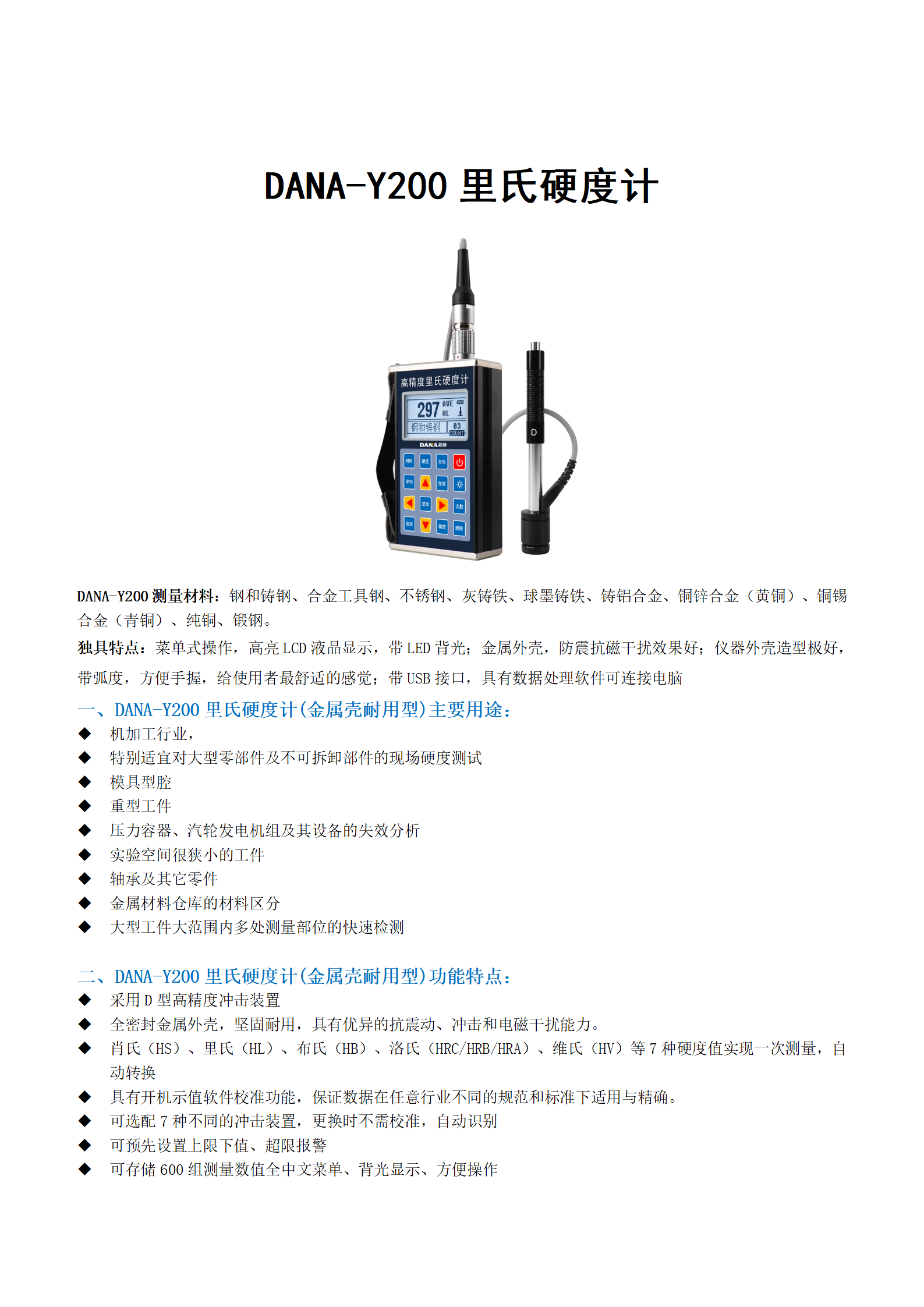 DANA-Y200便携式高精度里氏硬度计 各种金属测试