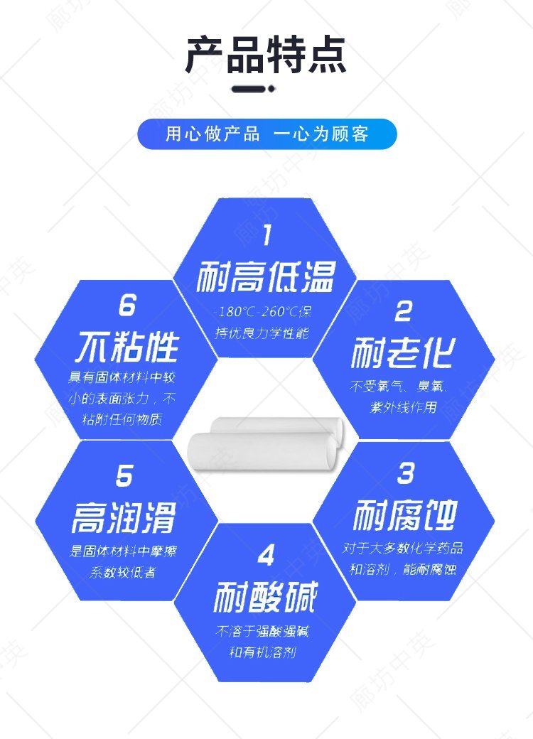 材质 | 四氟乙烯经聚合而成 | ||