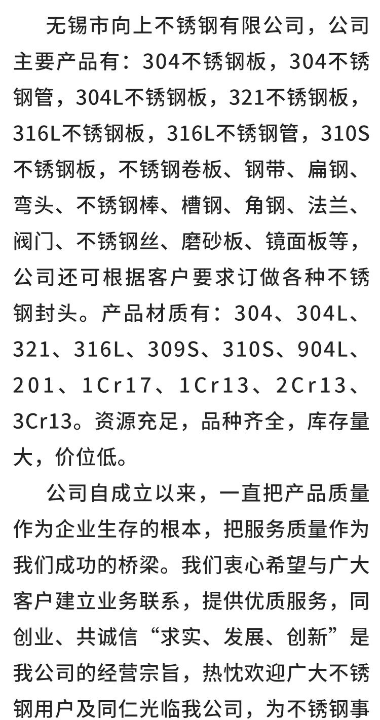 商铺名称:无锡市向上不锈钢有限公司