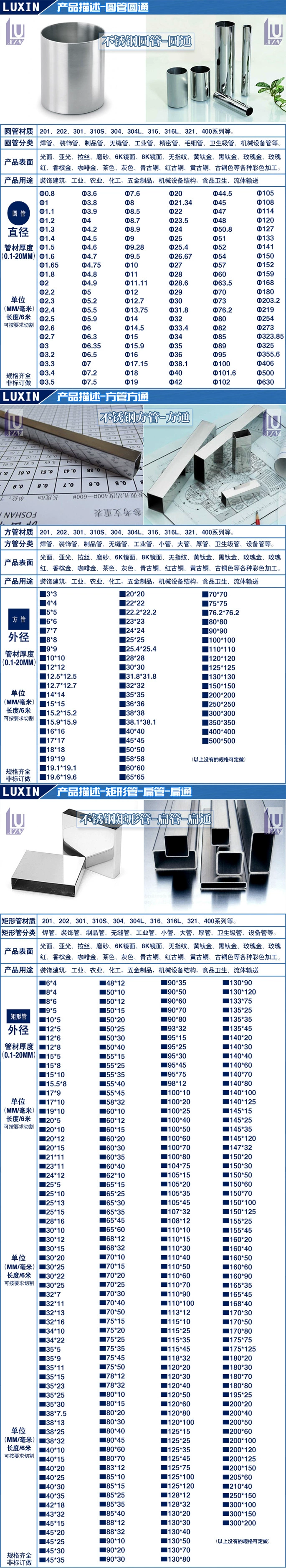 4.材质:不锈钢(304、201、316)、不锈钢板、不锈钢管。