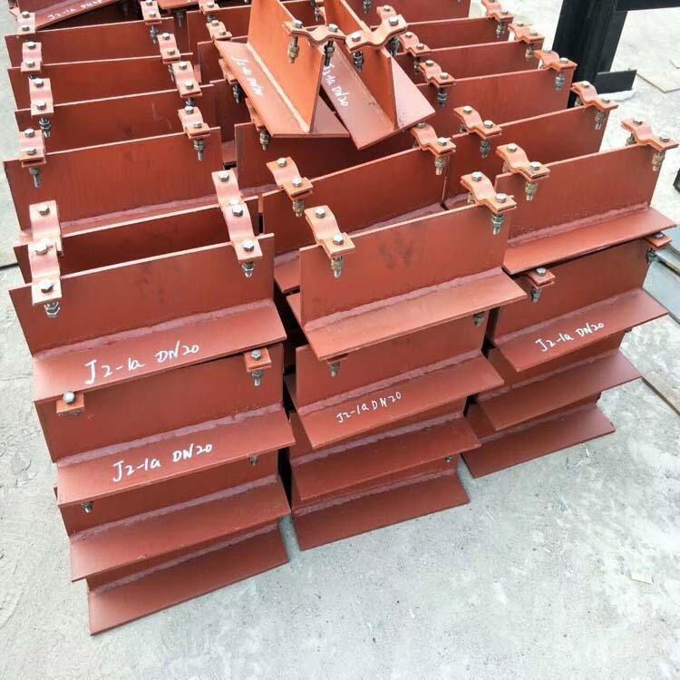 1.焊接型T型管托(J1型):由一块底板和一块立板焊接而成,分为四种型号,适用管径为不大于DN150;
