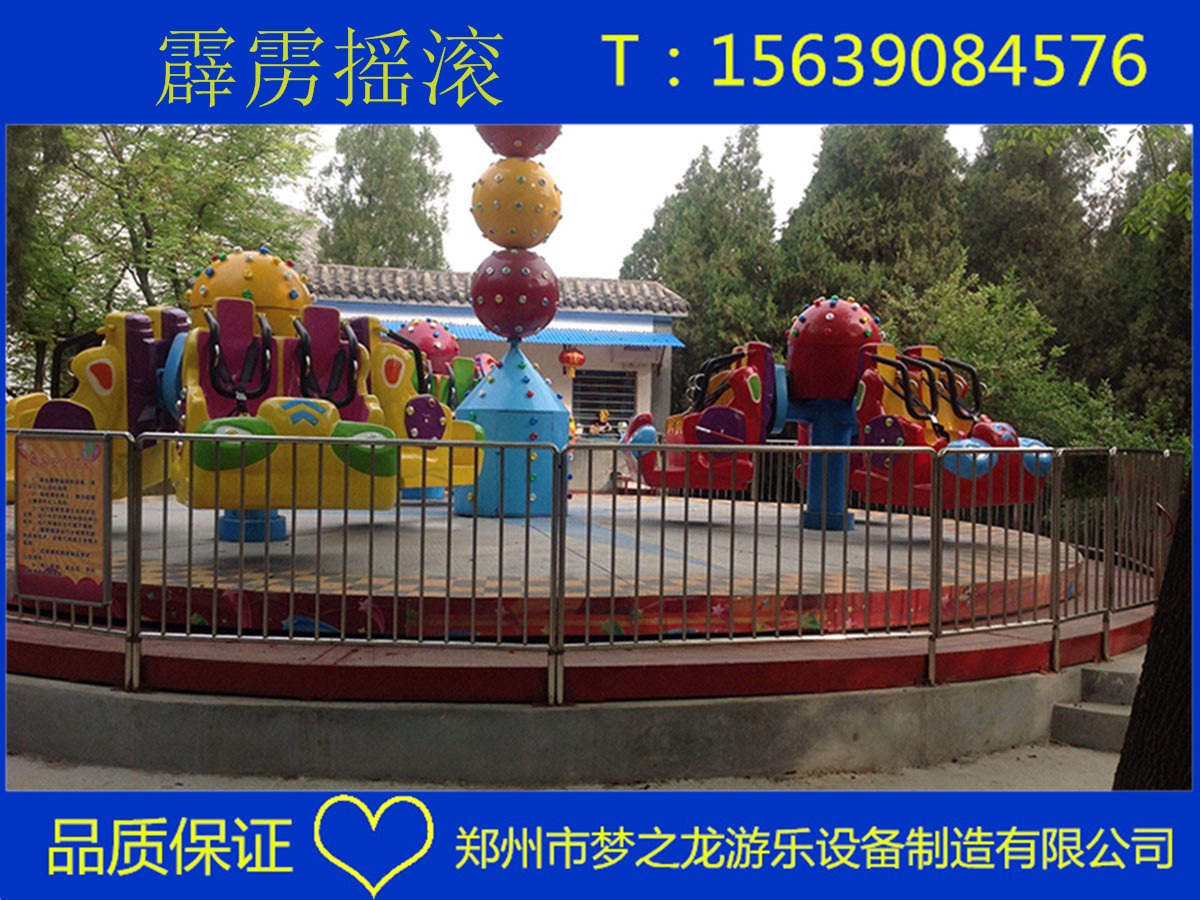 我厂生产的霹雳摇滚游乐设备是2018年度新品,其运动特点是乘客随座舱绕中心轴360°翻滚旋转,霹雳摇滚属于免检游乐设施,覆盖人数以承载人数向下覆盖。产品有霹雳摇滚、霹雳转盘、炫舞飞车、星际探险。