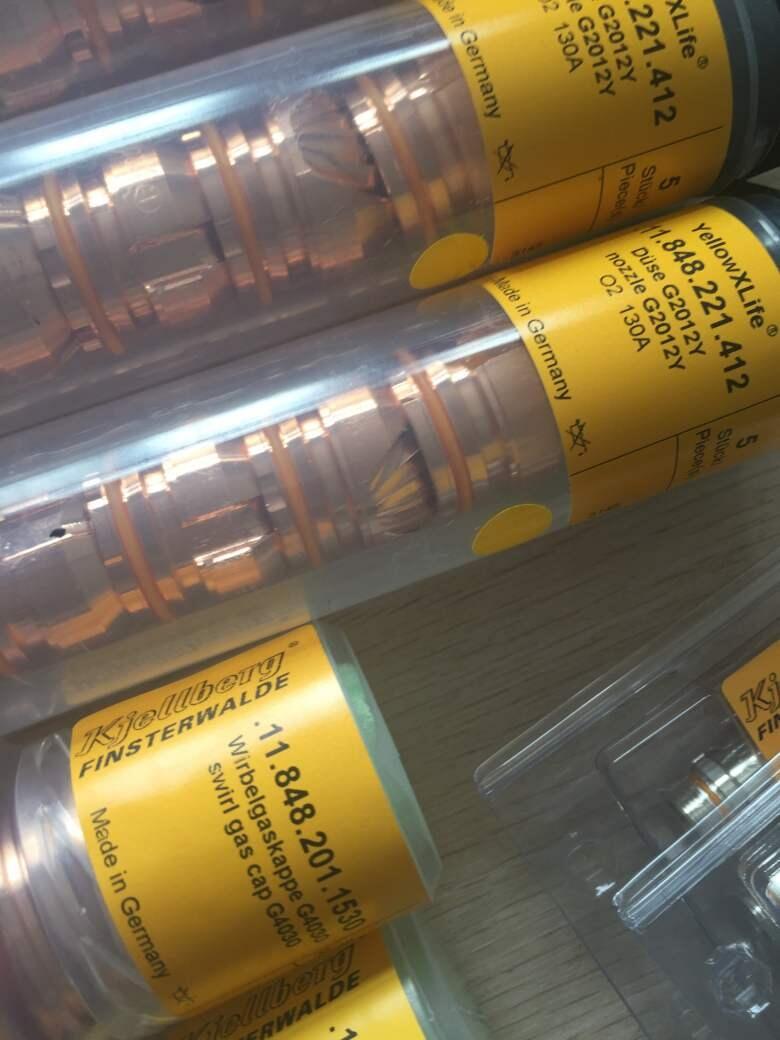 HiF ocus130i电极G002Y喷嘴G2012 HF130喷嘴G2010Y电极G002Y喷嘴帽G3028/S3028等离子喷嘴帽主要作用是保护喷嘴,喷嘴是等离子切割过程中保证切割速度,保持切割工件美观,切割面垂直度好且没有挂渣,等离子弧是通过等离子电离,将气体电离成融溶状态的等离子体,从等离子喷嘴喷出,等离子体温度能够达到15000摄氏度,可以切割金属材料,喷嘴必须保证圆形,才能让等离子弧柱稳定,能保证稳定均匀的弧柱,保证切割面的整洁和美观,提高生产效率,减少工件的二次加工。